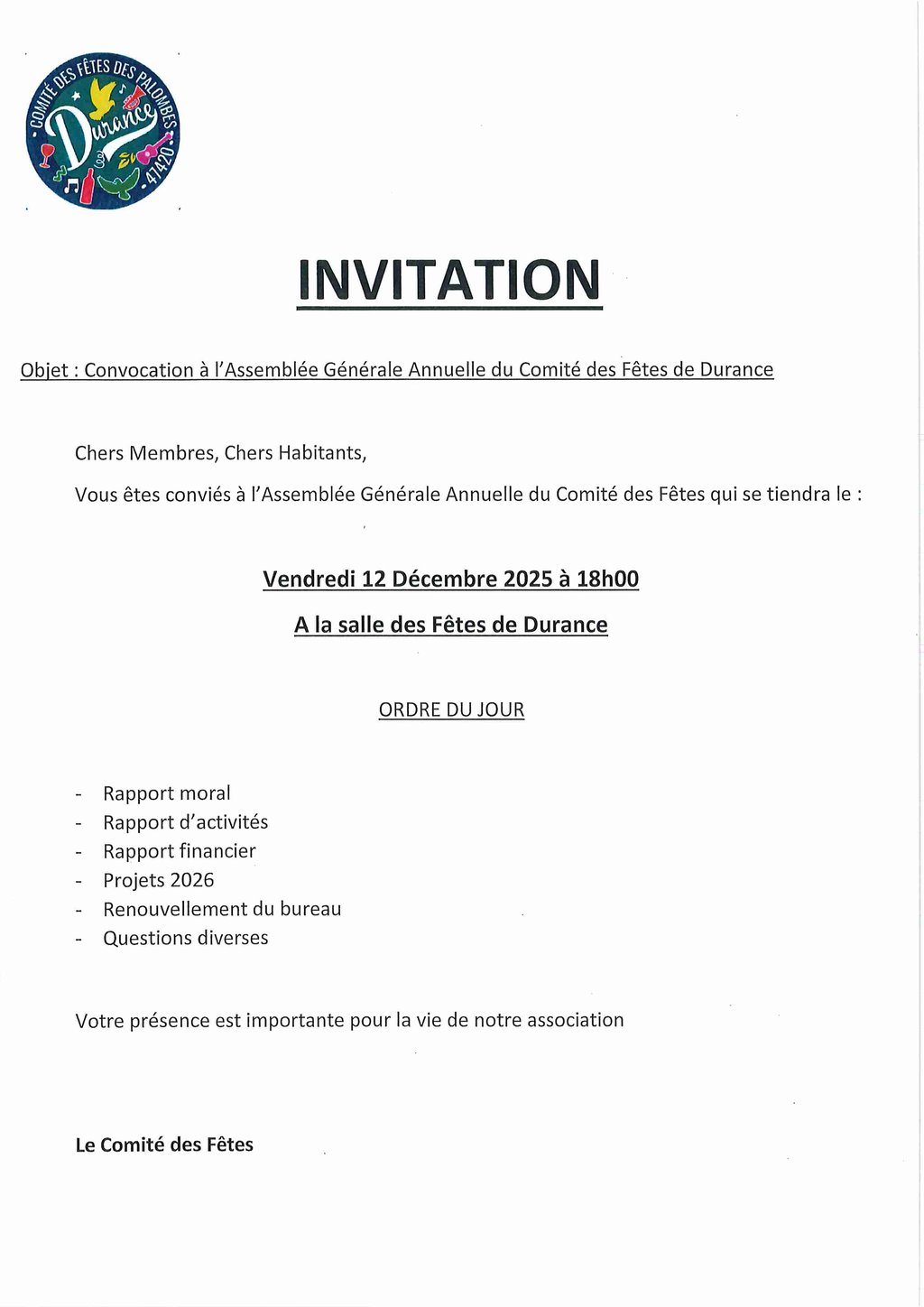 ASSEMBLÉE GÉNÉRALE DU COMITÉ DES FÊTES